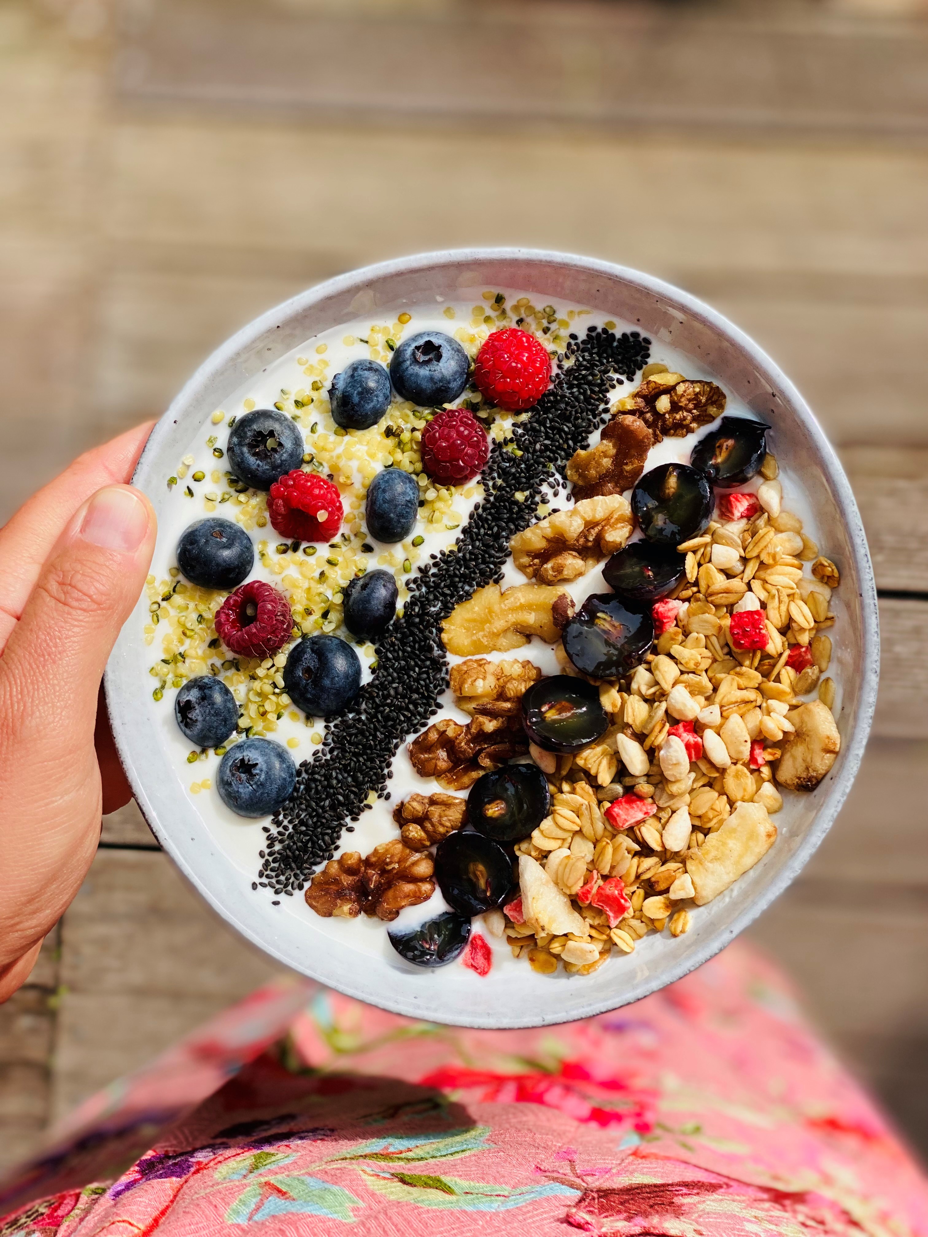 1. Ich teile mit Dir, all mein Wissen zu den Zutaten: Nüsse, Kerne, Saaten, Nussmus, (Pflanzen) Milch, Obst und (Pflanzen) Joghurt